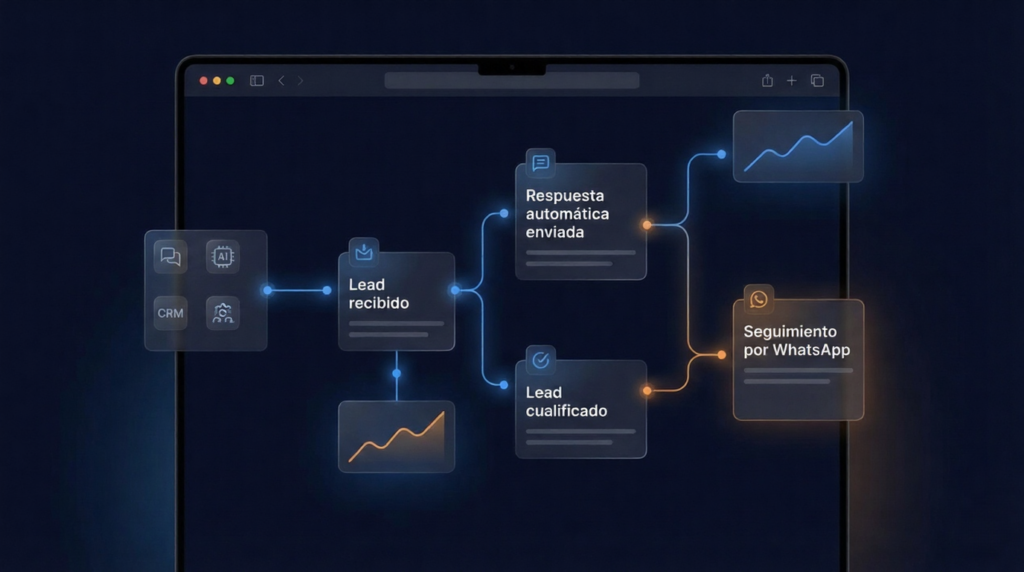 Implementamos embudos y flujos con IA para que cada lead reciba respuesta en segundos y llegue preparado a comprar.